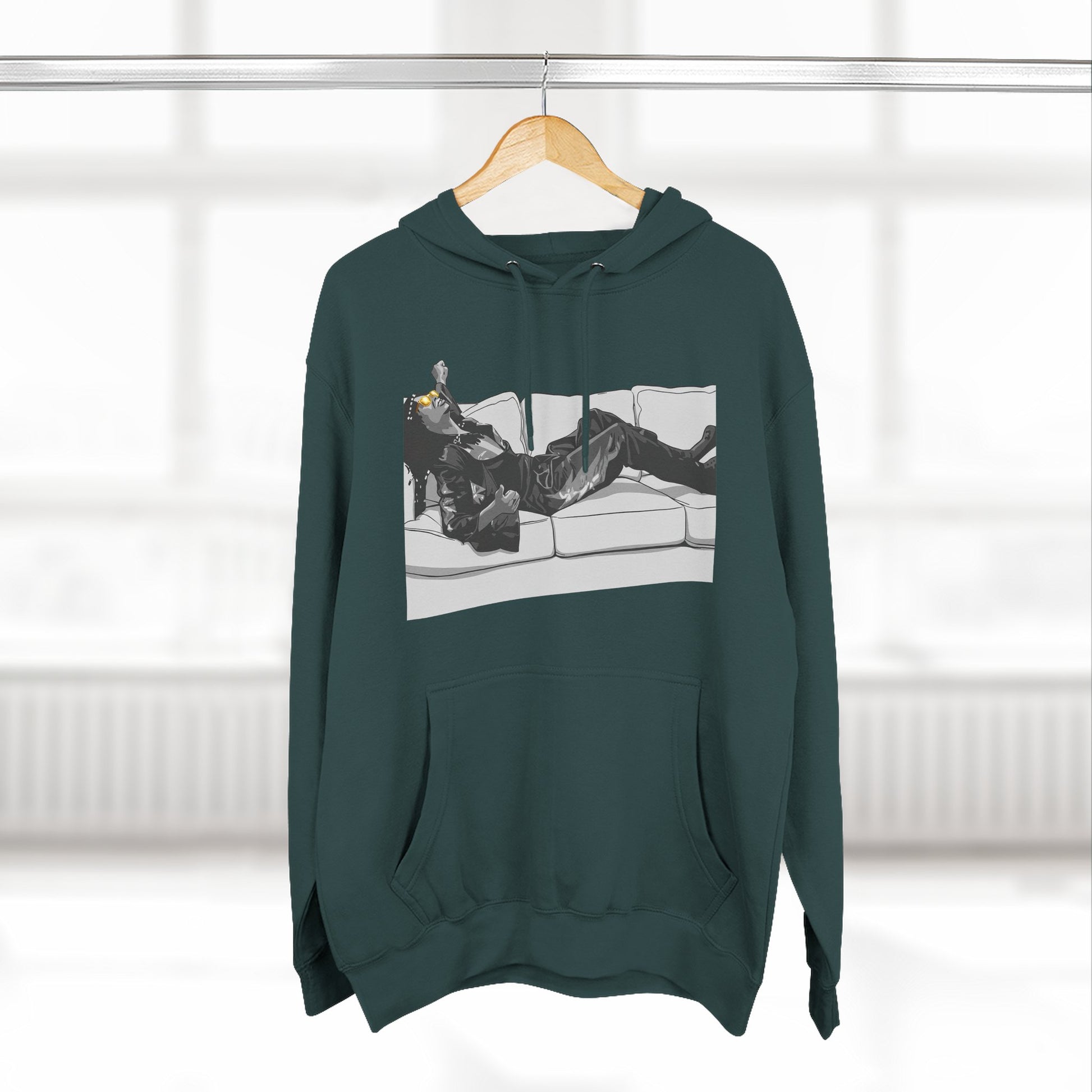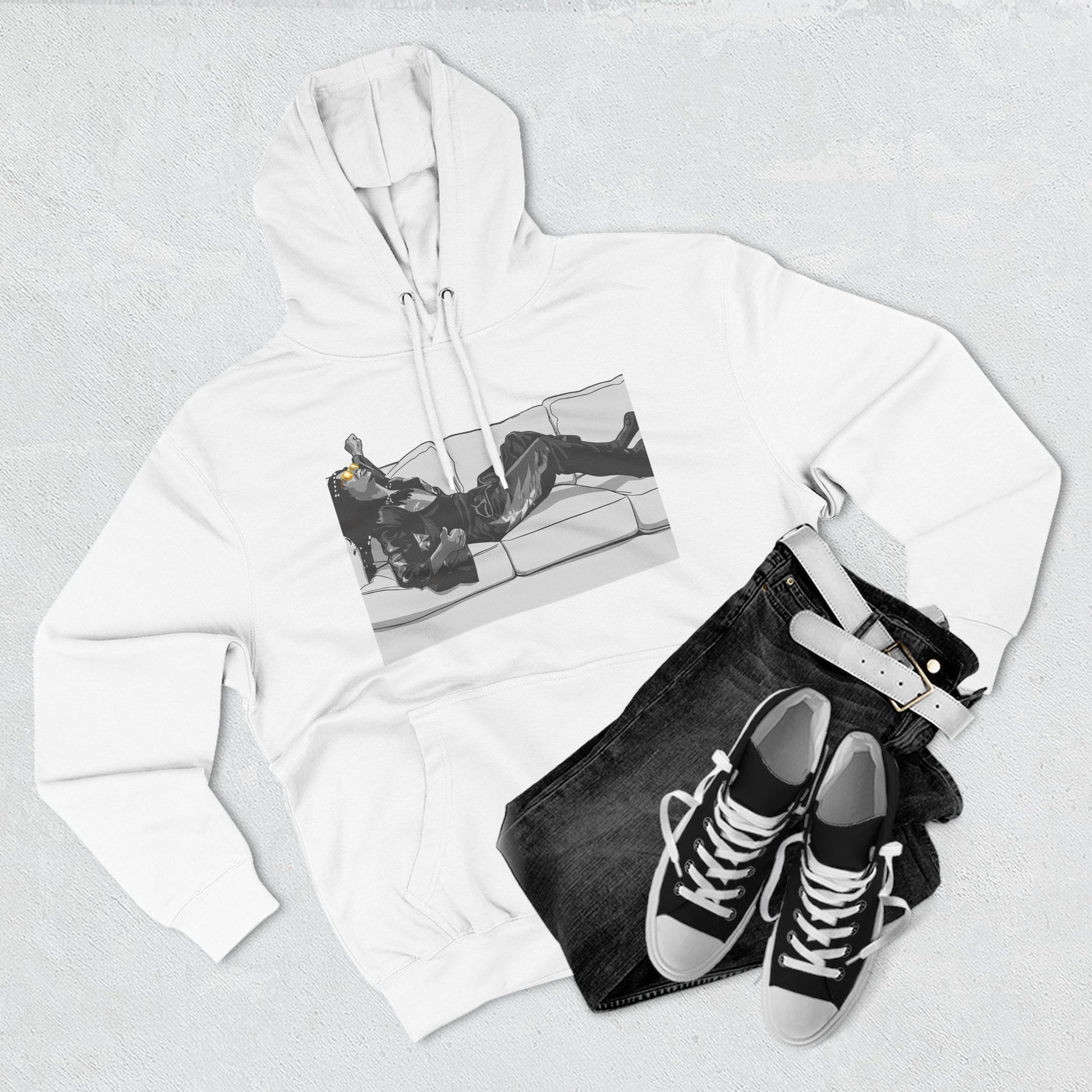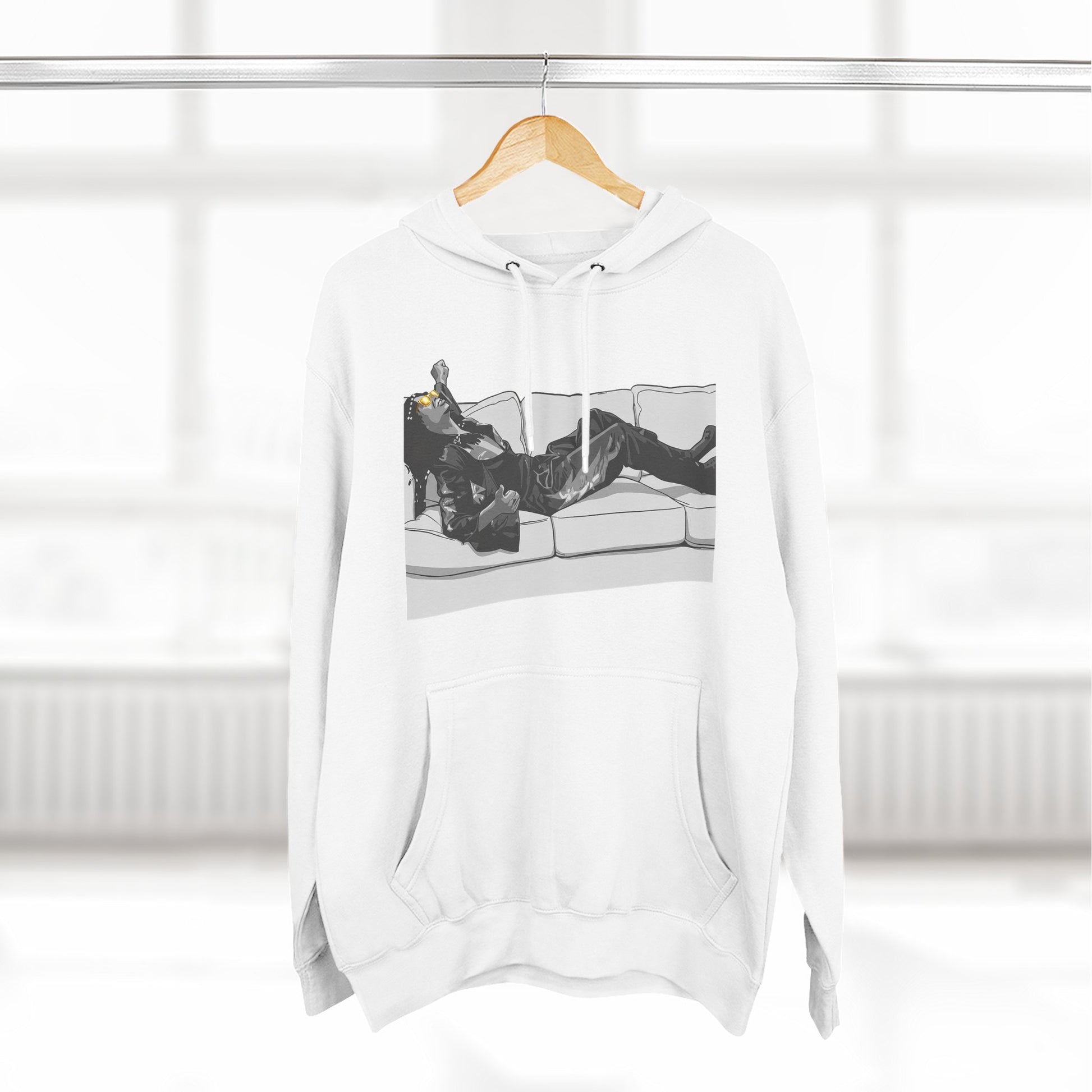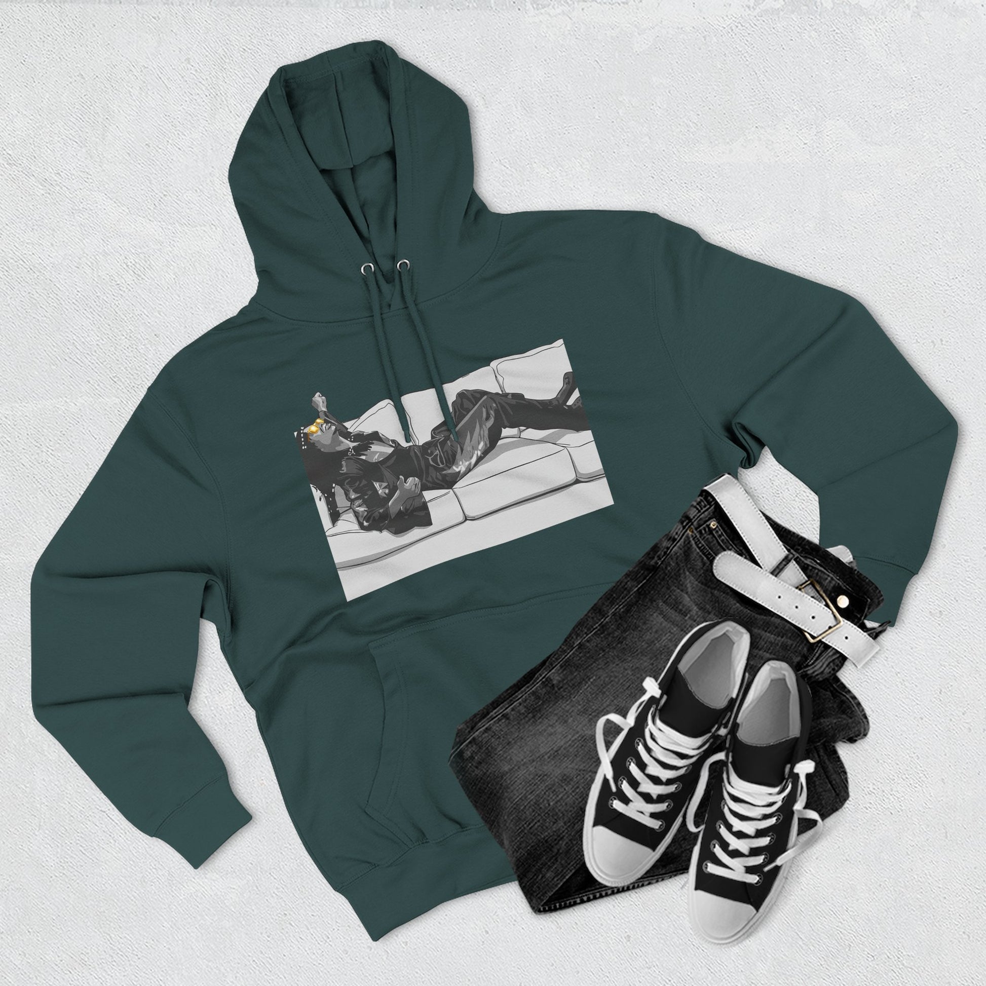 A three-panel fleece hoodie featuring a design of Dave Chappelle playing Rick James, exuding a fun and edgy vibe. Perfect for fans of Chappelle's Show and anyone who enjoys unique and bold apparel. Ideal for casual wear, lounging at home, or attending comedy shows and events.
